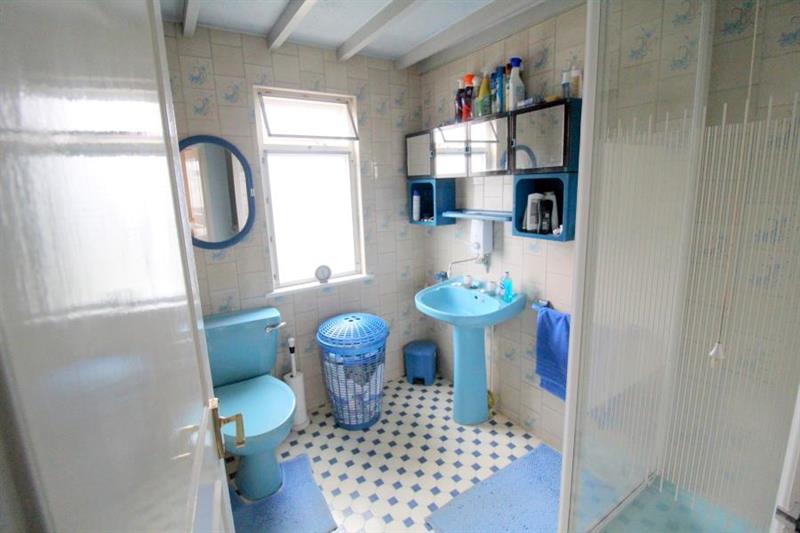 Rear aspect opaque window with secondary glazing. Shower cubicle with electric power shower. Pedestal hand wash basin and low level WC. Tiled walls.